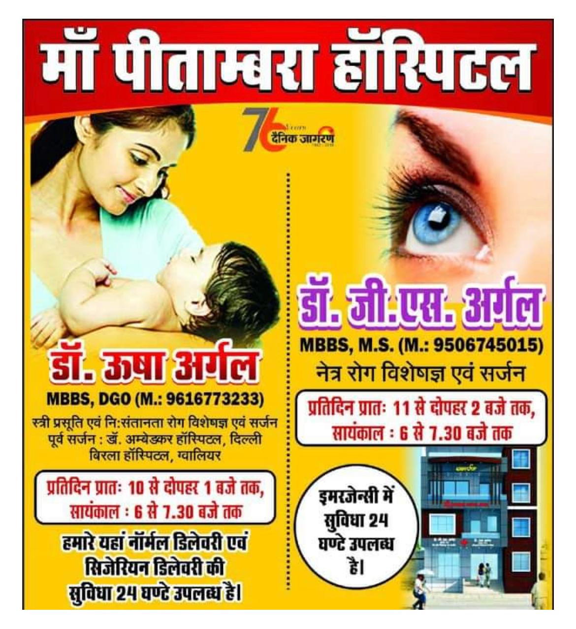 Maa Pitambara Hospital, situated in Jhansi. It is equipped with State of Art Equipment to provide world class services in Eye care and Obstetrics and Gynaecology. Maa Pitambara Hospital is a leading healthcare facility dedicated to providing comprehensive medical services and compassionate care. With a focus on patient well-being and advanced medical treatments, Maa Pitambara Hospital stands as a beacon of hope and healing for individuals seeking top-notch healthcare services.